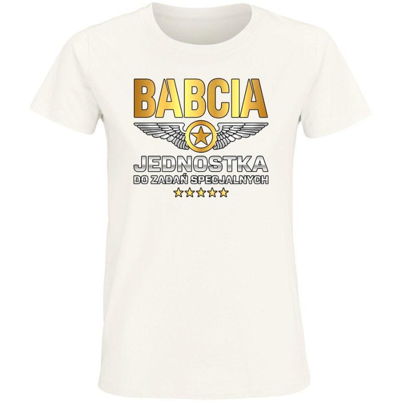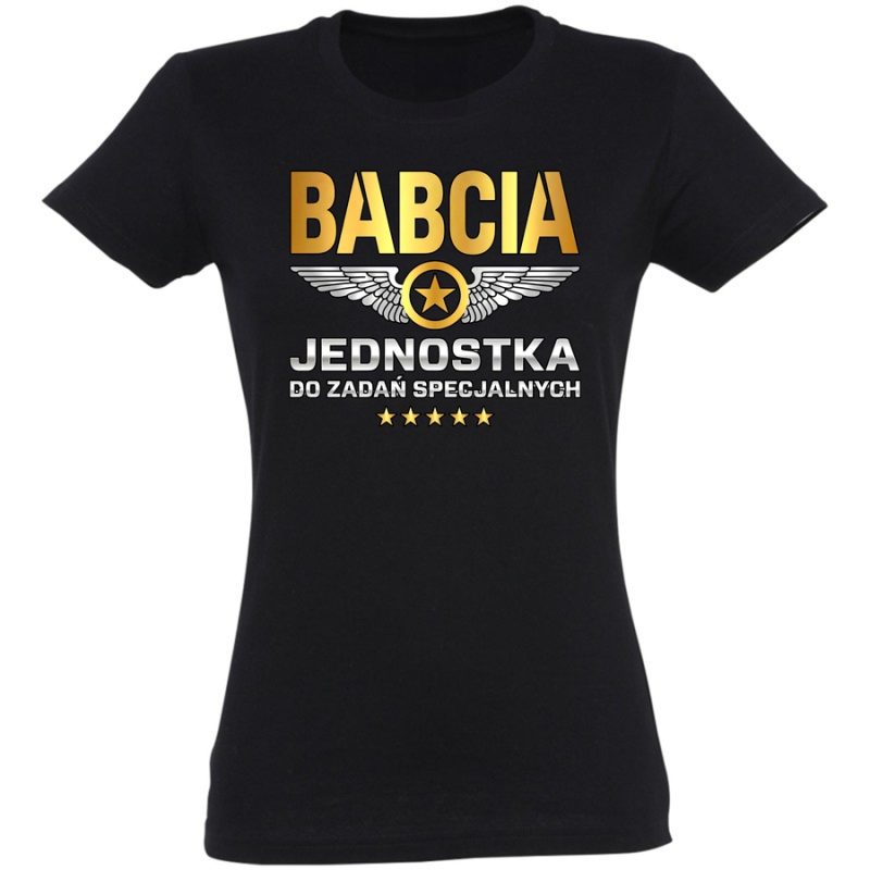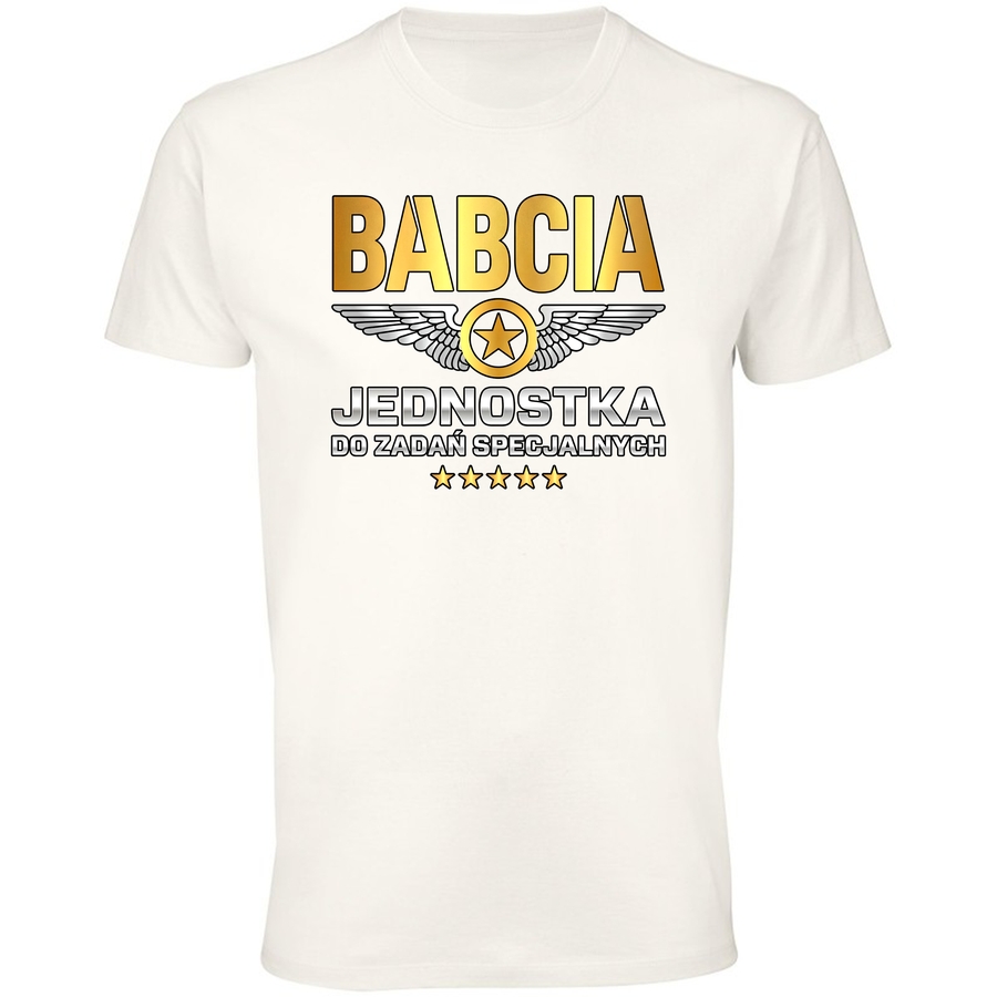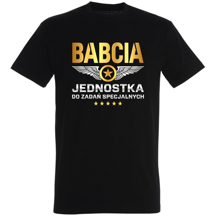 Gotowa na podbój świata, a może tylko weekendowy wypad za miasto? Nasza wyjątkowa koszulka „Babcia Jednostka do Zadań Specjalnych” to idealny sposób na wyrażenie swojego poczucia humoru i niezależności! Grafika w stylu retro, nawiązująca do logo lotniczych legend, łączy w sobie klasyczną elegancję z odrobiną szaleństwa. Wyraziste napisy „BABCIA” i „DO ZADAŃ SPECJALNYCH” w charakterystycznej czcionce przyciągają wzrok i budzą uśmiech. Drobne gwiazdki i skrzydła dodają całości lekkości i dynamiki. Ta koszulka to doskonały wybór dla wszystkich aktywnych babć, które nie boją się wyzwań i zawsze są gotowe na akcję. Poczuj się wyjątkowa, wyraź swój styl i pokaż, że jesteś prawdziwą „Jednostką”! Idealna na prezent dla ukochanej babci, która wciąż ma w sobie zapał do życia. No i pamiętaj – ta koszulka to nie tylko styl, ale przede wszystkim wygoda i trwałość!