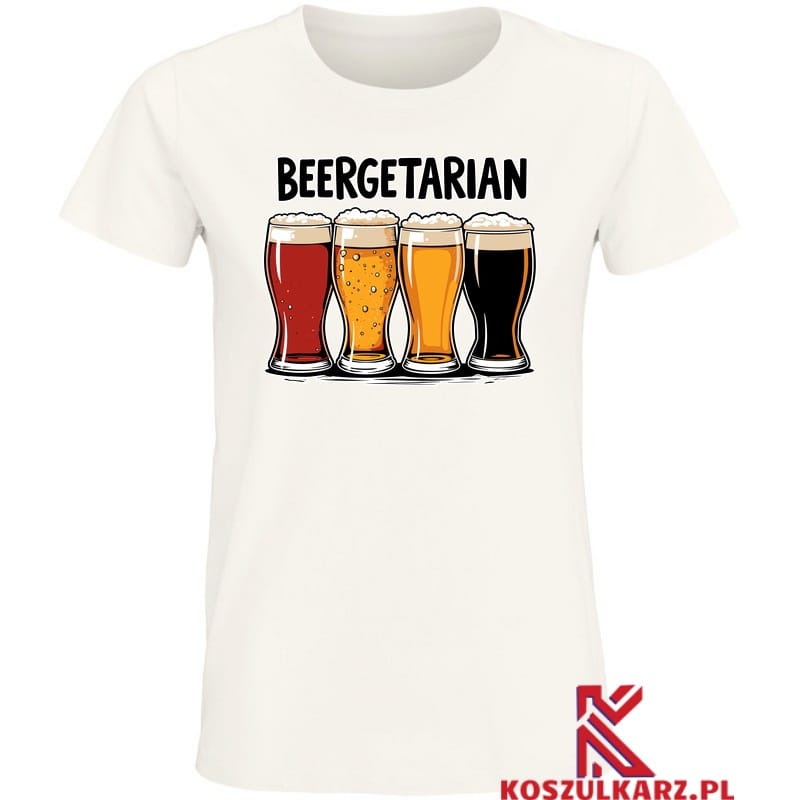 Dla tych, którzy wybierają piwo zamiast sałaty – Ta Koszulka dla Miłośników Piwa z napisem „Beergeetarian” to idealny wybór dla miłośników piwa z poczuciem humoru. Z humorem przedstawia pięć kufli piwa, każdy z innym rodzajem złocistego napoju, co podkreśla różnorodność piwnych smaków.