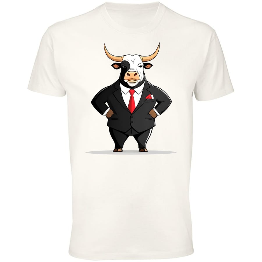 Koszulka z grafiką eleganckiego byka w garniturze to idealny wybór dla każdego pasjonata inwestowania i Giełdy Papierów Wartościowych. Byk z Inwestora, jako symbol hossy i giełdowego sukcesu, prezentuje się tutaj w wyjątkowym wydaniu – w czarnym garniturze, czerwonym krawacie i białej poszetce. Ta wyjątkowa ilustracja łączy profesjonalizm z nutą humoru, tworząc unikalny styl, który doskonale podkreśli Twoją pasję do świata finansów.