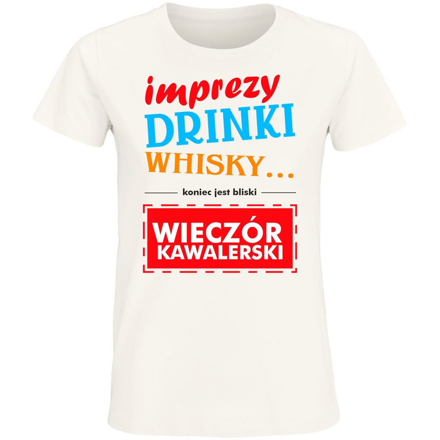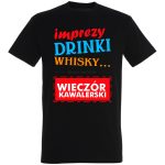 Przygotuj się na wieczór pełen dobrej zabawy i niezapomnianych chwil z naszą nową koszulką! Ta wyjątkowa grafika w stylu retro, z odważnymi, ręcznie rysowanymi czcionkami i żywymi kolorami, przeniesie Cię wprost do klimatu dawnych barów i drinków. „Imprezy Drinki Whisky” – idealne hasło dla każdej imprezy, a szczególnie dla wieczoru kawalerskiego! Zobaczysz, że napis „koniec jest bliski” doda szczyptę humoru i dystansu do nadchodzących wydarzeń. Ta koszulka to idealny sposób na wyrażenie swojego stylu – zabawny, odważny i absolutnie niepowtarzalny. Bądź gwiazdą każdej imprezy z tym wyjątkowym wzorem! Ta koszulka to więcej niż odzież – to manifestacja dobrego smaku i zamiłowania do dobrej zabawy. Wyobraź sobie siebie w tej koszulce, otoczony przyjaciółmi, z drinkiem w dłoni i uśmiechem na twarzy. To wizja, którą możesz zrealizować! Zaskocz znajomych, wybierz tę koszulkę i poczuj się wyjątkowo.