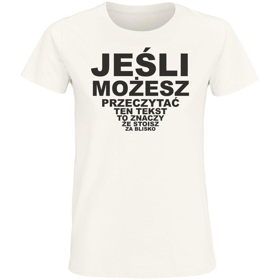 Poczuj klimat retro i zyskaj dawkę dobrej zabawy z naszą nową koszulką! Projekt graficzny w stylu minimalizmu z nutą ironii przyciąga wzrok i wywołuje uśmiech. Duże, czytelne napisy w odcieniach szarości tworzą unikalny i ponadczasowy design. Ta koszulka to idealny wybór dla osób z poczuciem humoru i nie bojących się wyróżniać. Napis „JEŚLI MOŻESZ PRZECZYTAĆ TEN TEKST TO ZNACZY ŻE STOISZ ZA BLISKO” to świetny pretekst do nawiązania rozmowy i rozbawienia otoczenia. Niezależnie od tego, czy idziesz na koncert, spotykasz się ze znajomymi, czy po prostu relaksujesz się w domu, ta koszulka doda Ci pewności siebie i oryginalności. Idealna na prezent dla bliskiej osoby z poczuciem humoru! Wyraź swój styl i pozwól, by inni zgadnij, co masz na myśli. Ta koszulka to więcej niż odzież – to manifestacja Twojej osobowości! Zaskocz swoich znajomych i pokaż, że wiesz, jak dobrze się bawić.
