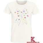 Dynamiczny i wesoły design – Kokarda na koszulce jest nie tylko kolorowa, ale także dynamiczna, z światłami rozchodzącymi się po jej krawędziach, dodającym życia i energii każdej świątecznej stylizacji.