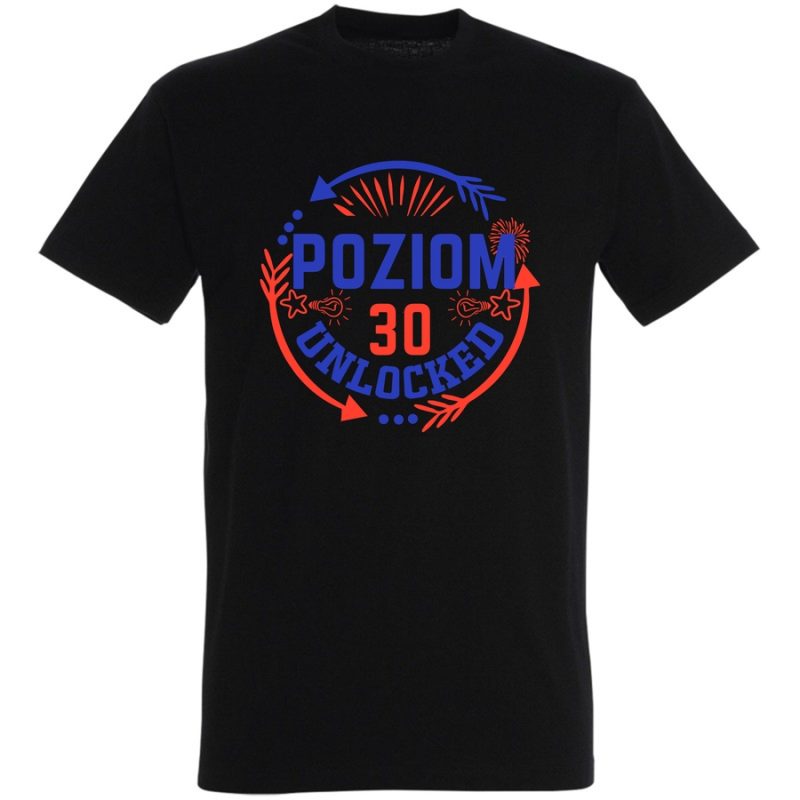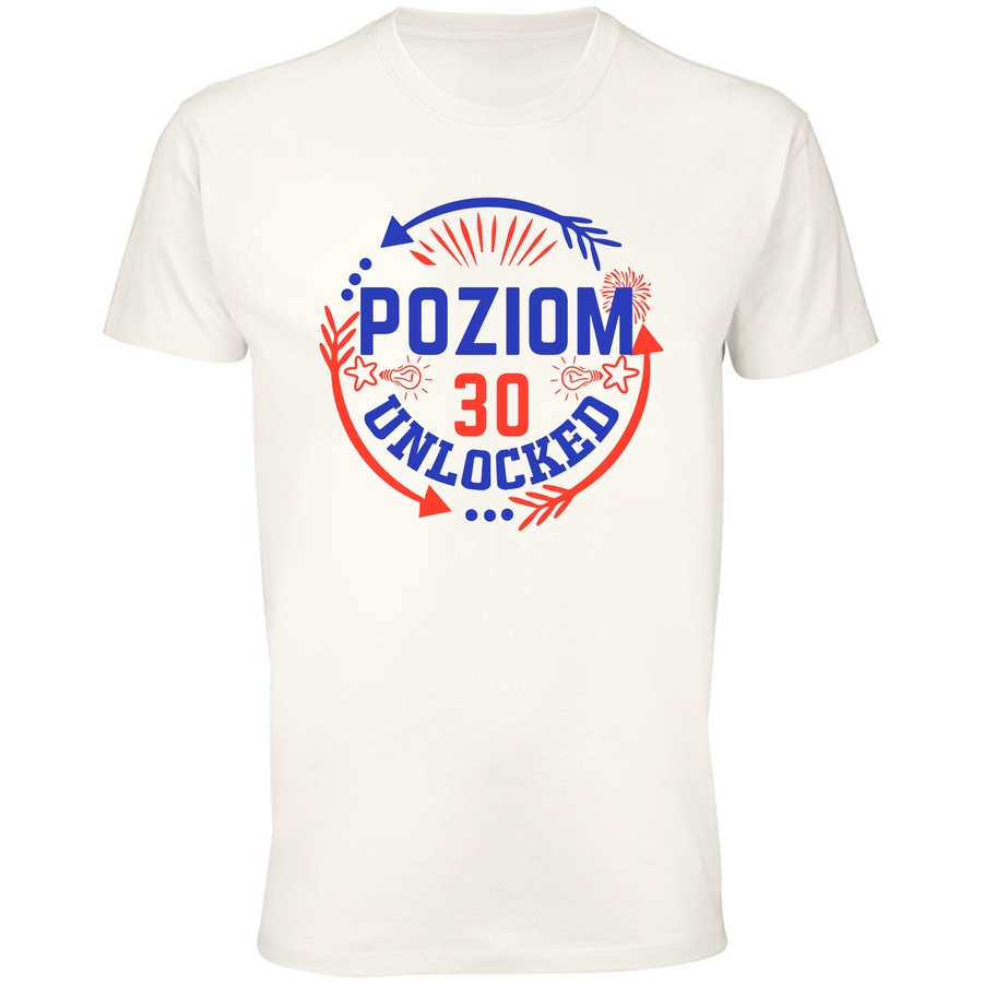 Odkryj swój poziom! Ta koszulka to idealny sposób na wyrażenie swojego entuzjazmu i poczucia humoru. Wizualnie grafika łączy w sobie elementy gier wideo z nutą retro, tworząc unikalny i zabawny design. Centralny napis „POZIOM 30 UNLOCKED” od razu przyciąga wzrok, sygnalizując osiągnięcie kolejnego etapu w życiu, grze lub po prostu dobrym dniu! Otaczające go elementy – strzałki, promienie, a także stylizowane na grające nuty motywy – dodają koszulce charakteru i energii. Idealna dla graczy, fanów popkultury i wszystkich, którzy lubią się uśmiechać. Poczuj się jak bohater, który właśnie odblokował nowe umiejętności! Wyraź siebie z dystansem i dobrym humorem. Ta koszulka to świetny sposób na rozpoczęcie dnia z pozytywną energią i przypomnienie sobie, że zawsze możesz podnieść poprzeczkę!