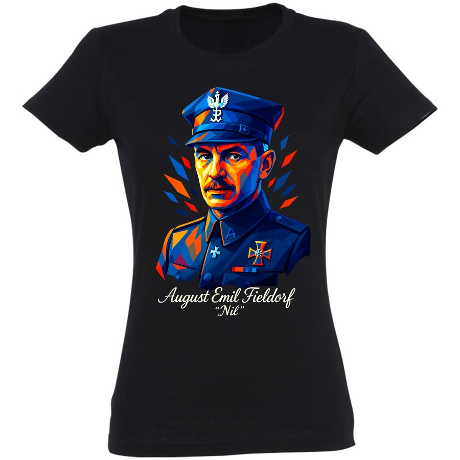 Przenieś się w czasie z naszą nową koszulką! Ozdobiona grafiką w stylu pop-art, przedstawiającą August Emil Fieldorf „Nil”, to idealny sposób na wyrażenie swojego unikalnego stylu i zainteresowania historią. Charakterystyczna stylistyka grafiki, zgeometryzowane kształty i żywe kolory, nadają koszulce nowoczesny i świeży wygląd, który z pewnością przyciągnie spojrzenia. To nie tylko element garderoby, to manifestacja szacunku dla legendy polskiego podziemia. Koszulka świetnie sprawdzi się na co dzień, na spotkaniach ze znajomymi, na imprezach tematycznych lub jako wyjątkowy prezent dla osoby z pasją do historii. Wybierz swój rozmiar i pokaż światu, że znasz i cenisz bohaterów! Ta koszulka to hołd dla odwagi i determinacji, które na zawsze weszły do historii Polski. Dostępna dla mężczyzn i kobiet, sprawi, że wyróżnisz się z tłumu. Poczuj dumę i wyraź swoje przywiązanie do tradycji! To idealny wybór dla każdego patrioty!