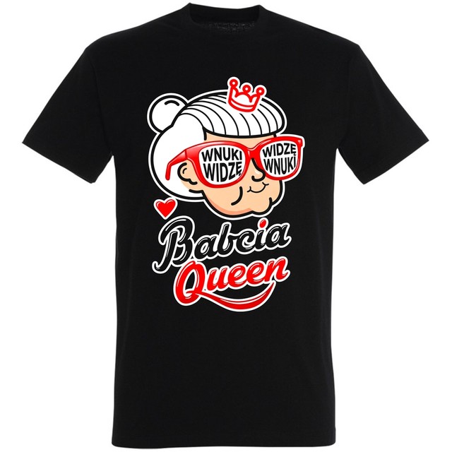Pokaż światu, kto tu rządzi! Nasza koszulka „Babcia Queen” to hołd dla najfajniejszych babć na świecie. Grafika przedstawia uśmiechniętą babcię w okularach, z przerysowanymi, komiksowymi elementami, podkreślającymi jej energię i styl. Napisy „Wnuki Widzę” i „Babcia Queen” umieszczone w charakterystyczny sposób, dodają koszulce wyjątkowego uroku. Idealna dla babci, która kocha wnuki i uwielbia być w centrum uwagi. Zaskocz swoją babcię oryginalnym prezentem, który sprawi jej mnóstwo radości i pokaże jak bardzo ją cenisz. Ta koszulka to gwarancja dobrych emocji i mnóstwa uśmiechów! Bądź dumny z babci i pokaż jej to na co dzień.