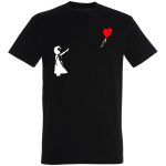 Poczuj klimat ulicznej sztuki i wyraź siebie dzięki naszej wyjątkowej koszulce! Grafika w stylu Banksy’ego, przedstawiająca dziecko puszczające balon, to idealny sposób na dodanie charakteru i odrobiny tajemniczości do Twojej garderoby. Minimalistyczny design, wykonany w czerni i bieli, sprawia, że koszulka pasuje do każdego outfitu – od casualowych po bardziej stylizowanych zestawów. To więcej niż odzież – to wyraz Twojej osobowości i zamiłowania do oryginalności. Ta koszulka to hołd dla sztuki, która porusza i inspiruje. Wyobraź sobie, jak przyciągniesz spojrzenia i zaczniesz ciekawe rozmowy, nosząc na sobie ten wyjątkowy design. To idealny prezent dla miłośników sztuki, streetwearu i tych, którzy cenią sobie oryginalność. Dodaj odrobinę artystycznego sznytu do swojego codziennego stylu! Poczuj się wyjątkowy i wyraź siebie dzięki tej niezwykłej koszulce. To inwestycja w Twój styl, która nigdy Ci się nie znudzi. Daj upust swojej kreatywności i pokaż światu, kim jesteś! Ta koszulka jest Twoim manifestem.