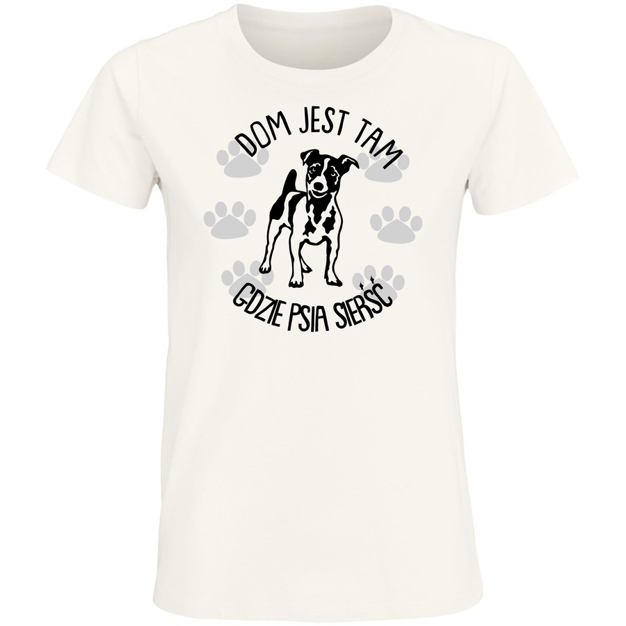 Nowa koszulka dla prawdziwych psich miłośników! Wyraź swoją pasję do czworonogów z naszym wzorem, który łączy w sobie urok starej szkoły i nowoczesny design. Grafika przedstawia uroczego psa rasy Jack Russell Terrier, otoczonego śladami łapek i słowami „DOM JEST TAM, GDZIE PSIA SIERŚĆ” oraz „GDZIE PSIA SIERŚĆ”. To idealny sposób, aby pokazać światu, że Twój pies to członek Twojej rodziny. Wykonana z miękkiej i oddychającej bawełny, ta koszulka zapewni Ci komfort przez cały dzień. Niezależnie od tego, czy idziesz na spacer z psem, spotykasz się z przyjaciółmi, czy po prostu relaksujesz się w domu, ta koszulka sprawi, że będziesz wyglądać i czuć się świetnie. Dostępna w szerokiej gamie rozmiarów (od S do 2XL), zarówno dla mężczyzn, jak i dla kobiet.