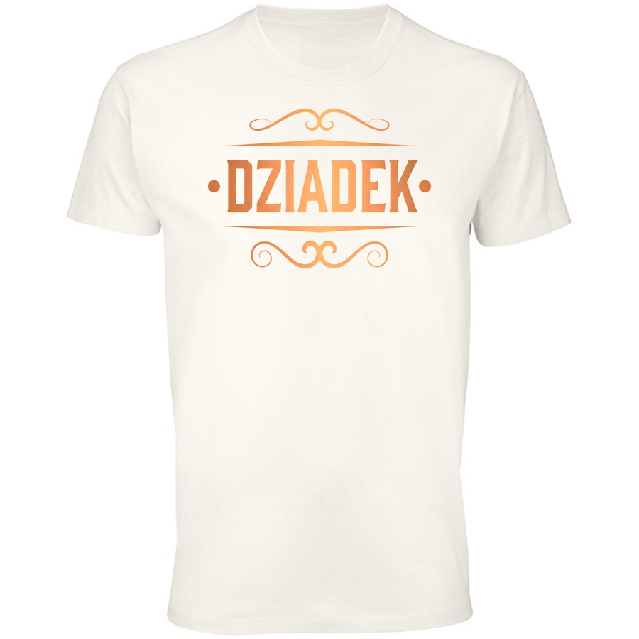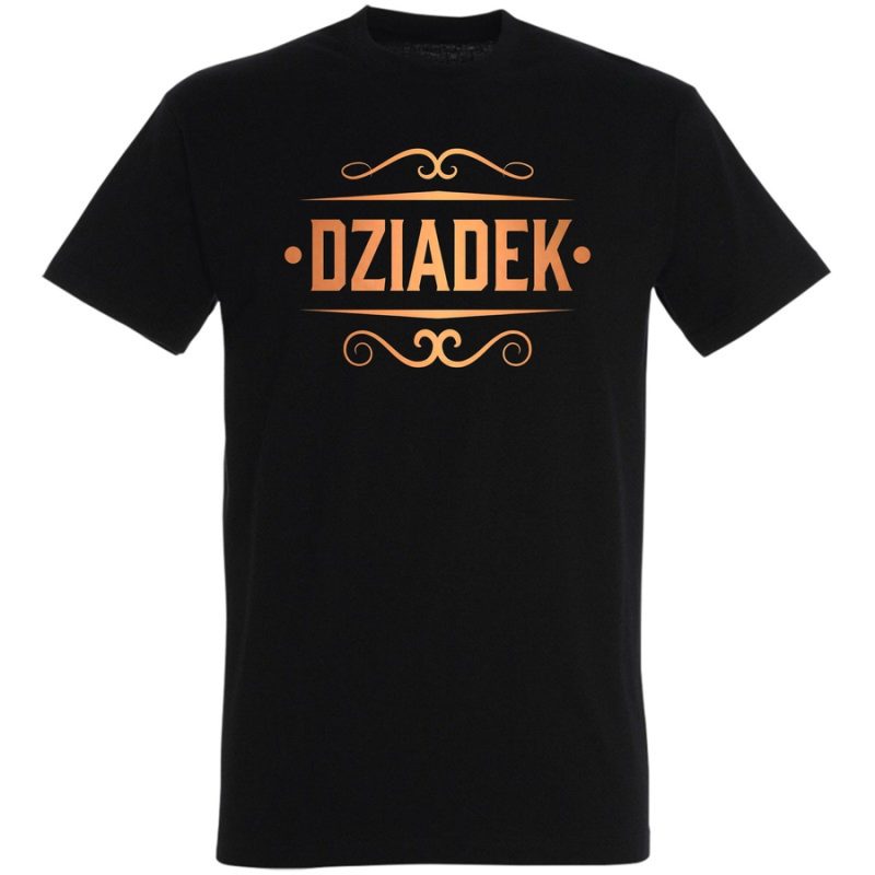 Przenieś się w czasie z naszą wyjątkową koszulką! Grafika odzwierciedla styl vintage, nawiązując do dawnych szyldów i logo. Duży napis „DZIADEK”, w charakterystycznej, lekko postrzępionej czcionce, przywodzi na myśl stare plakaty i logo z początku XX wieku. Delikatne, złociste ornamenty, oprawiające napis, dodają całości elegancji i podkreślają unikatowy charakter grafiki. Ta koszulka to idealny wybór dla osób ceniących klasykę, tradycję i niebanalny styl. Będziesz w niej wyglądać stylowo i z klasą. Wyraź swój charakter dzięki koszulce, która emanuje nostalgiczną atmosferą. To strzał w dziesiątkę dla fanów vintage, retro i wszystkiego, co ponadczasowe! Koszulka idealna na prezent dla dziadka, ojca lub dla każdego, kto lubi odważne i stylowe wzory. Poczuj się wyjątkowo i wyróżnij się z tłumu. To nie tylko ubranie, to manifestacja Twojego gustu!