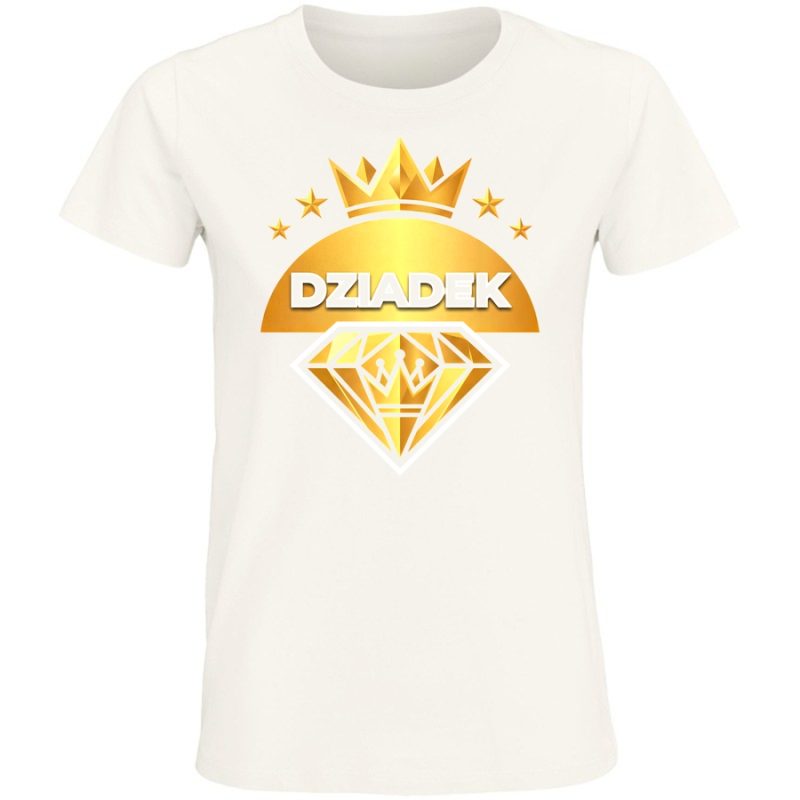 Poczuj się wyjątkowy i podbij świat z naszą nową koszulką! Grafika w stylu retro, łącząca w sobie elementy grafiki komputerowej z lat 90. i estetykę vintage, przyciąga wzrok i dodaje charakteru każdej stylizacji. Centralnym motywem jest wyraźnie widoczny napis „DZIAADEK”, który z pewnością wywoła uśmiech na twarzy. Otacza go złoty pierścienie z koroną, gwiazdami i trójkątnymi elementami, co tworzy unikatową i zabawna kompozycję. Ta koszulka to idealny wybór dla osób ceniących oryginalność, poczucie humoru i lubiących wyróżnić się z tłumu. Doskonała na prezent dla dziadka, ojca, brata lub przyjaciela, chcącego dodać sobie odrobinę stylu i poczucia własnej wartości. Niezależnie od okazji, ta koszulka stanie się Twoim ulubionym elementem garderoby. Pokaż swój styl i podbij świat z naszą wyjątkową koszulką!