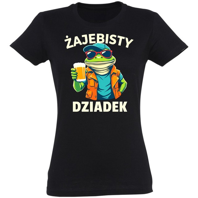 Poznaj koszulkę z charakterem! Nasz „Dziadek ŻAJEBISTY” to idealny sposób na wyrażenie swojego poczucia humoru i podkręcenie każdej stylizacji. Grafika łączy w sobie zabawę i nonsens – postać żaby w okularach przeciwsłonecznych, trzymająca piwo, to kwintesencja relaksu i dobrego samopoczucia. Dodatkowy napis „DZIADEK” podkreśla lekki, dowcipny charakter koszulki. Ta koszulka to strzał w dziesiątkę dla każdego, kto lubi się śmiać i lubi wyróżniać z tłumu! Idealna na spotkania z przyjaciółmi, wakacyjne wyjazdy, a nawet na co dzień – dodaj odrobinę rozrywki do swojej garderoby! Zaskocz bliskich i pokaż im, że masz zmysł humoru.