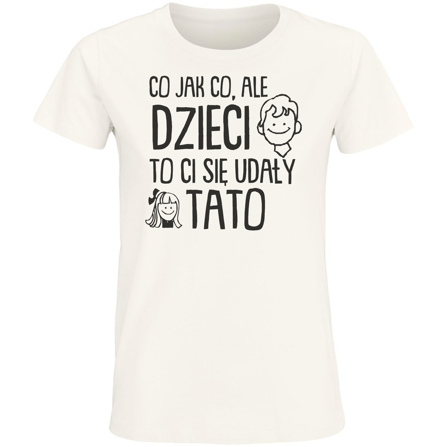 Poznaj koszulkę, która rozkręci każde towarzystwo i sprawi, że poczujesz się jak prawdziwy mistrz rodzicielstwa! Nasza nowa odsłona z minimalistycznym, retro klimatem to idealny sposób na wyrażenie swojego unikalnego poczucia humoru. Grafika w stylu komiksu z uśmiechniętym tatusiem i jego pociechą to kwintesencja rodzicielskiej radości i pokory. „CO JAK CO, ALE DZIECI TO CI SIĘ UDAŁY” – hasło, które na pewno wywoła uśmiech na twarzy każdego rodzica i znajomego. Ta koszulka to nie tylko modny element garderoby, ale także świetny sposób na rozpoczęcie rozmowy i pokazanie swojego charakteru. Z delikatnym szarym tłem, grafika wyróżnia się swoimi wyraźnymi, czarnymi konturami, tworząc spójny i atrakcyjny wygląd. Idealna na codzienne wyjścia, spotkania z przyjaciółmi czy rodzinne uroczystości!