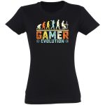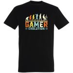Gotowi na epicką podróż przez historię gamingowej ewolucji? Ta koszulka to hołd dla każdego gracza, od pioniera w pikselowych światach po mistrza wirtualnej rzeczywistości. Grafika przedstawia zabawny i nostalgiczny obraz ewolucji człowieka, od naszego praprzodka aż po współczesnego gracza – wyposażonego w kontroler i gotowego na wyzwanie. Duże, wyraźne słowo „GAMER” w stylu retro, umieszczone pod serią sylwetek, podkreśla naszą pasję i tożsamość. Pod spodem mniejszy napis „EVOLUTION” oraz ikony przycisków odtwarzania i pauzy, nawiązujące do interaktywności i ciągłego rozwoju w świecie gier.