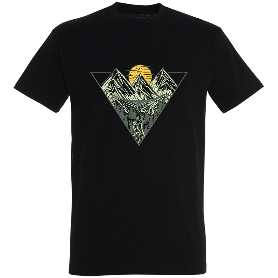 Poczuj siłę natury i wędrownego ducha z naszą nową koszulką! Grafika przedstawia majestatyczne, stylizowane góry otoczone bujnym lasem i meandrującą rzeką, zamknięte w dynamicznym kształcie trójkąta. Minimalistyczny, ręcznie rysowany styl w odcieniach szarości i ciepłych tonacji zachwyca swą prostotą i elegancją. Idealna dla miłośników górskich wędrówek, outdooru i osób ceniących sobie unikalny design. Ta koszulka to nie tylko element garderoby, to manifestacja Twojej pasji do przygody i podziwu dla piękna gór. Wyraź siebie i pokaż światu, że żyjesz pełnią życia! Oddychająca tkanina zapewni Ci komfort przez cały dzień, a solidny nadruk sprawi, że koszulka posłuży Ci przez długi czas. Szukasz idealnego prezentu dla bliskiej Ci osoby? Postaw na coś wyjątkowego! Wybierz koszulkę z inspirującą grafiką gór.