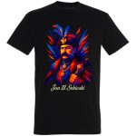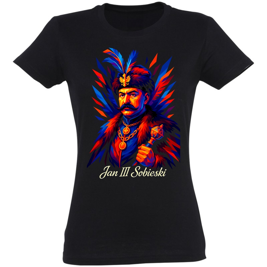 Zanurz się w bogatą historię i królewski styl z naszą nową koszulką! Na froncie grafika przedstawia w wyrazisty, nowoczesny sposób wizerunek króla Jana III Sobieskiego. Charakterystyczny strój z pióropeszem i błyszczący orzeł w koronie – to wszystko w dynamicznej, geometrycznej formie, która przyciąga wzrok. Grafika łączy w sobie elementy vintage z nowoczesną estetyką, tworząc unikalny design, który wyróżni Cię z tłumu. Idealna dla miłośników historii, tradycji i osób ceniących oryginalne wzornictwo. Ta koszulka to nie tylko element garderoby, to manifestacja Twojej pasji i poczucia stylu. Wyobraź sobie, jak z pewnością przyciągniesz spojrzenia na festiwalu historycznym, podczas oglądania filmu o XVII wieku, czy po prostu na co dzień. Poczuj dumę nosząc na sobie symbol polskiej chwały! Wyraź siebie w królówskim stylu! Odkryj historię na nowo, nosząc tę wyjątkową koszulkę. To idealny prezent dla każdego patrioty i fana historii.