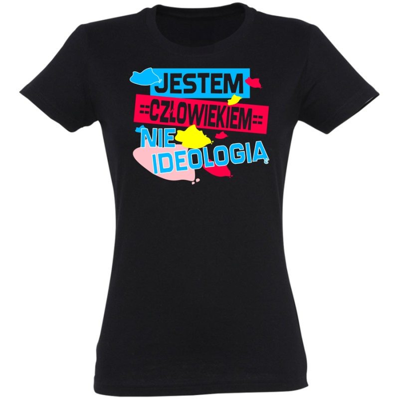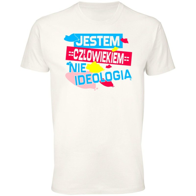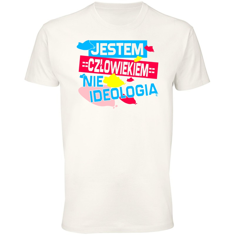 Przedstawiamy koszulkę, która na pewno rozkręci każdą imprezę i doda Ci odrobinę szaleństwa! Grafika w stylu retro, przypominająca plakaty z lat 80. i 90., łączy w sobie humor i odważne kolory. Widniejący na niej napis „Jestem człowiekiem, nie ideologia” w dużych, blokowych literach, w odważnych kolorach – błękitnym, różowym, żółtym i szarym – z pewnością przyciągnie wzrok i pobudzi do refleksji. Urocze, stylizowane rysunki ptaka i psa dodają całości uroku i sprawiają, że koszulka jest wyjątkowa. Idealna dla osób z poczuciem humoru i niezależnych, które nie boją się wyrażać swojego zdania. Ta koszulka to nie tylko element garderoby, to manifestacja indywidualności! Bądź sobą, wyrażaj swoje poglądy, a z tą koszulką zrobisz to z uśmiechem na twarzy. Zapewnij sobie wygodę i styl na co dzień!