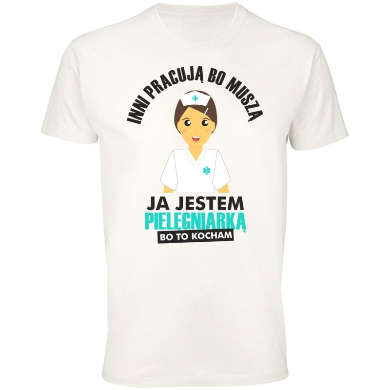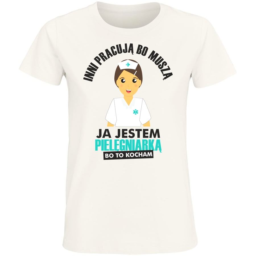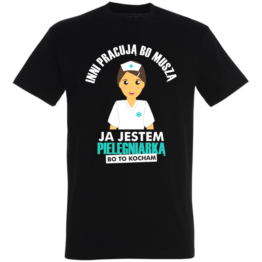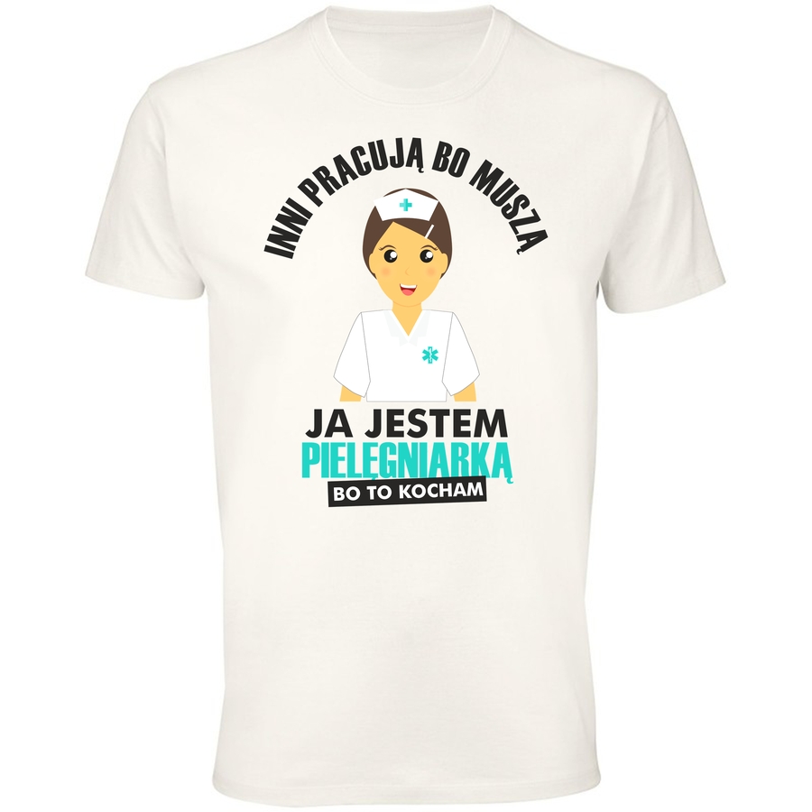 Pokaż światu, jak bardzo kochasz swoją pracę! Ta koszulka to idealny sposób, by wyrazić pasję i dumę z bycia pielęgniarką. Wykonana w stylu cartoon, z uroczym rysunkiem pielęgniarki, z pewnością przyciągnie wzrok i wywoła uśmiech. Nadruk w jasnych, radosnych kolorach sprawia, że koszulka jest nie tylko stylowa, ale i pozytywna. Napis „JA JESTEM PIELĘGNIARKĄ BO TO KOCHAM” podkreśla Twoją miłość do zawodu i sprawia, że koszulka staje się wyjątkowym manifestem.