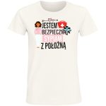 Pokaż swój profesjonalny charakter z nutą humoru! Nasza najnowsza koszulka to idealny sposób na wyrażenie dumy z zawodu. Grafika przedstawia uśmiechniętą pielęgniarkę, z której głowy wystaje strzałka wskazująca na napis „JESTEM POŁOŻNA”. Do tego dodany jest symbol „+” oraz stylizowany symbol sprzętu medycznego, tworząc zabawny i rozpoznawalny motyw. Pod spodem królują słowa „MÓJ MĄŻ MOŻE SPAĆ BEZPIECZNIE” – idealne dla wszystkich, którzy cenią sobie poczucie humoru i chcą podarować bliskim prezent z charakterem. Ta koszulka to idealny wybór dla położnych i wszystkich, którzy chcą pokazać, że mają poczucie humoru i lubią wyróżniać się z tłumu.