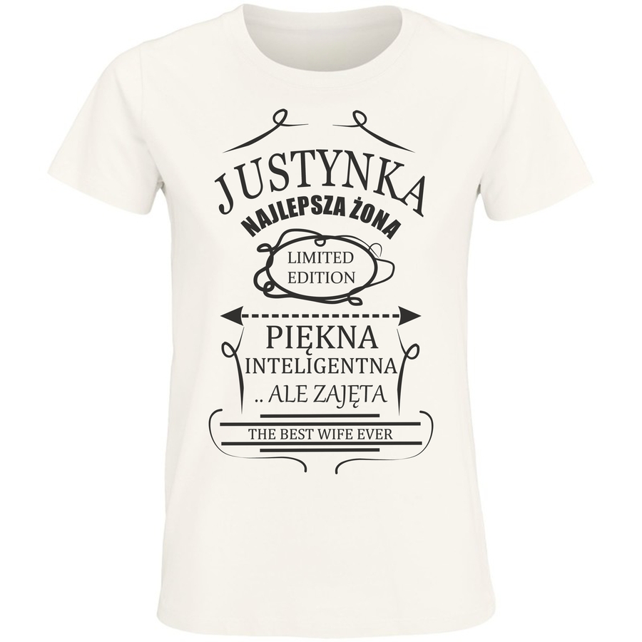 Przygotuj się na falę komplementów i podziwu! Nasza wyjątkowa koszulka z grafiką „Justynka – Najlepsza Żona” to idealny sposób, by pokazać światu, że jesteś kobietą o wyjątkowym guście i poczuciem humoru. Grafika w stylu vintage, z charakterystyczną czcionką i subtelnymi elementami dekoracyjnymi, przyciąga wzrok i budzi uśmiech. „Piękna, Inteligentna… Ale Zajęta” – to tylko niektóre z atrybutów, które z dumą możesz nosić na sobie. A na koniec, bo podkreślamy wyjątkowość, „The Best Wife Ever” – kto by się nie chciał tak czuć? Ta limitowana edycja to strzał w dziesiątkę dla żon, dziewczyn, a nawet dla tych, które chcą podarować bliskiej osobie prezent, który na długo pozostanie w pamięci. Koszulka to doskonały sposób na wyrażenie swojej osobowości i poczucia stylu. No i nie zapomnijmy – jest niezwykle wygodna i stylowa! Z pewnością przyciągniesz wzrok i zyskasz mnóstwo pozytywnych komentarzy. Poczuj się wyjątkowa i pozwól, by ta koszulka przemówiła za Ciebie! To więcej niż odzież – to wyraz Twojego charakteru. Zaoszczędź czas i wybierz prezent, który zawsze się sprawdzi! Ta koszulka to kwintesencja dobrego gustu i poczucia humoru! Nie czekaj, zamów już dziś i poczuj się gwiazdą! To idealny dodatek do Twojej garderoby.