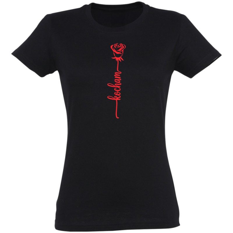 Przedstawiamy wyjątkową koszulkę, która łączy w sobie subtelną elegancję i odważny przekaz! Na ciemnym tle wyróżnia się minimalistyczna grafika – czerwona róża, której płatki układają się w słowo „kocham”. To idealny prezent dla ukochanej osoby, przyjaciela lub po prostu dla Ciebie, by wyrazić swoje uczucia w oryginalny sposób. Nadruk wykonany jest w technologii, która zapewnia trwałość i odporność na wielokrotne prania. Ta koszulka to nie tylko element garderoby, ale także wyraz Twojej osobowości i stylu.
