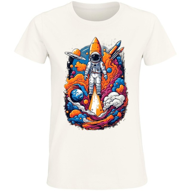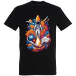 Odkryj w sobie kosmicznego ducha z naszą nową koszulką! Wyrazisty design, inspirowany estetyką psychodelicznego pop-artu i retro ilustracji, przeniesie Cię wprost na pokład rakiety. Na froncie króluje astronauta w dynamicznej pozie, otoczony eksplozją kolorów i fantastycznych planet. Ta koszulka to idealny wybór dla tych, którzy lubią wyróżniać się z tłumu i wyrażać swoją pasję do kosmosu i oryginalnego stylu. Niezależnie od tego, czy planujesz wieczorną imprezę, czy po prostu chcesz dodać odrobinę kosmicznego szaleństwa do codziennego outfitu, ta koszulka będzie strzałem w dziesiątkę! Zaskocz znajomych i pokaż im, że masz klasę. Z naszą koszulką pokonasz granice rzeczywistości!