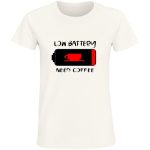 Masz ten dzień, w którym energia spada na dno? My też! Ta koszulka to idealny sposób na wyrażenie swojego stanu ducha i podkreślenie potrzeby porannej kawy. Grafika przedstawia ikonę baterii z czerwonym wypełnieniem, w której zamiast symbolu naładowania, znajduje się urocza filiżanka kawy. Pod ikoną widnieje napis „LOW BATTERY” na górze i „NEED COFFEE” na dole, co sprawia, że koszulka jest idealna dla wszystkich kawoszy i miłośników humoru.