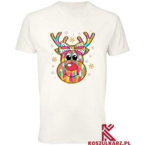 Koszulka wykonana jest z wysokiej jakości bawełny, co zapewnia komfort noszenia i wytrzymałość nawet po wielu praniach. Każdy świąteczny detal jest drukowany z wykorzystaniem nowoczesnych technologii, co gwarantuje żywe kolory i trwałość. Świąteczny wzór świetnie komponuje się z codziennymi zimowymi stylizacjami, dodając im świątecznego klimatu.