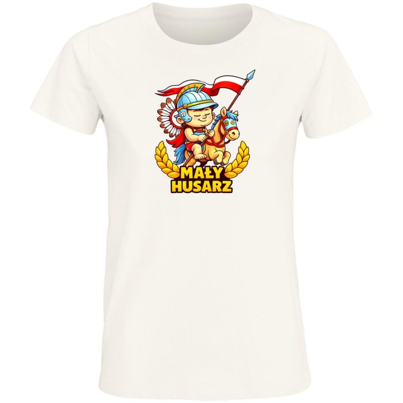 Pokaż swój polski patriotyzm z uśmiechem! Ta wyjątkowa koszulka to hołd dla tradycji i ducha polskiego orła, podany w formie uroczej, kreskówkowej stylizacji. Widzimy tu młodego, zabawnego „Małego Husarza” na koniu, z pióropeszem i mieczem – nowoczesną interpretację polskiego dziedzictwa. Grafika łączy w sobie elementy historyczne z lekkim, humorystycznym akcentem, idealnie pasującym do każdego fana Polski i dobrej zabawy. To idealny sposób na wyrażenie dumy z kraju, w sposób oryginalny i niezapomniany. Koszulka będzie świetnym prezentem dla bliskich, przyjaciół i wszystkich, którzy cenią sobie unikalny styl i poczucie humoru. Z pewnością przyciągniesz spojrzenia i wywołasz uśmiechy na twarzach przechodniów. To więcej niż ubranie – to manifestacja polskiego ducha! Wyraź swoją miłość do Polski w oryginalny i zabawny sposób, nosząc tę wyjątkową koszulkę. Idealna na codzienne stylizacje, imprezy tematyczne czy po prostu jako wyraz swojego polskiego charakteru. Poczuj dumę i radość z noszenia tej wyjątkowej grafiki!