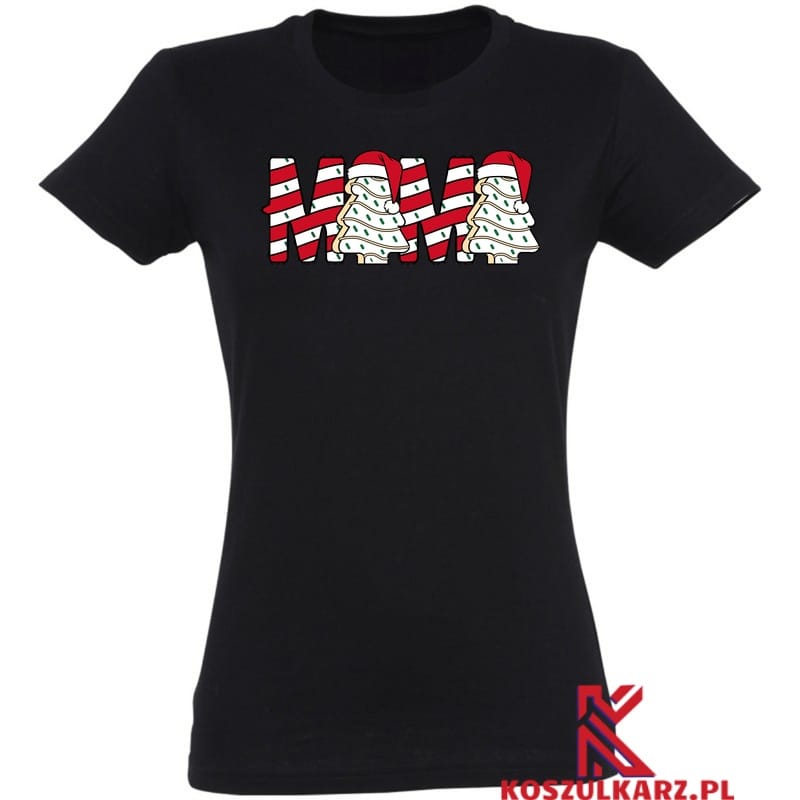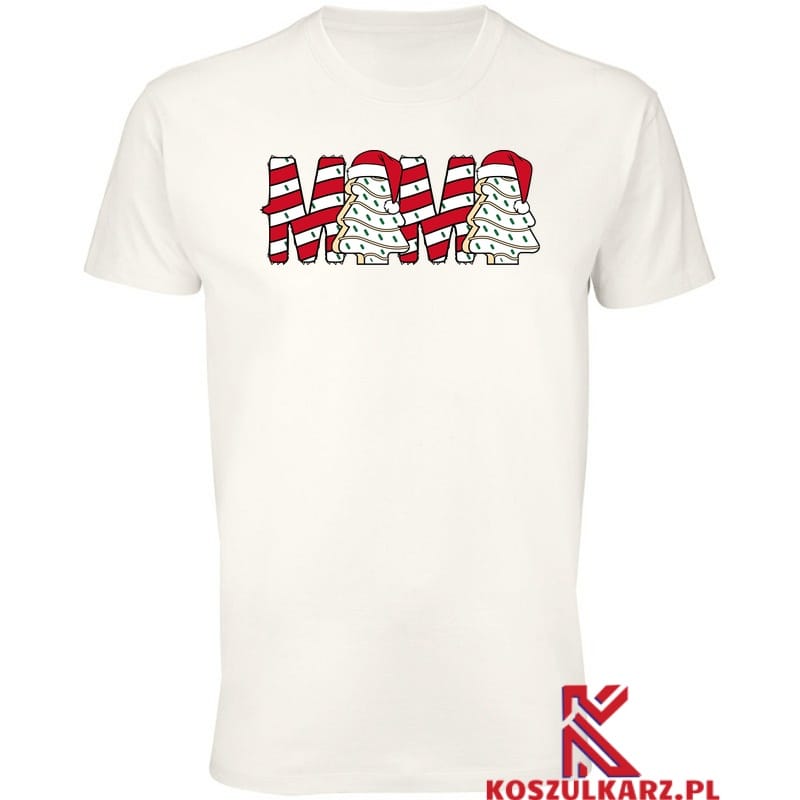 Koszulka Mama Świąteczne drzewka na tle koszulki – Ta unikalna koszulka przedstawia zabawnie przystrojone choinki w czerwonych czapkach, które odzwierciedlają radosny i wesoły duch świąt. Zaprojektowane z myślą o tym, aby przyciągnąć uwagę i sprawić, że każdy dzień będzie wyjątkowy.