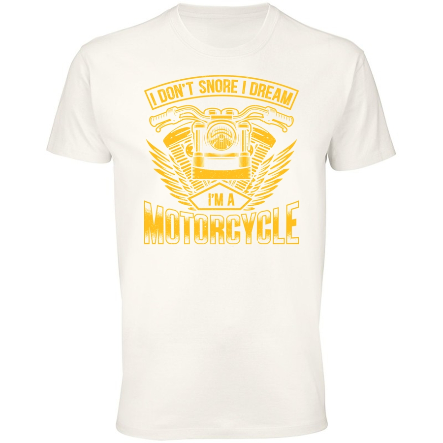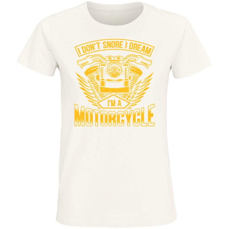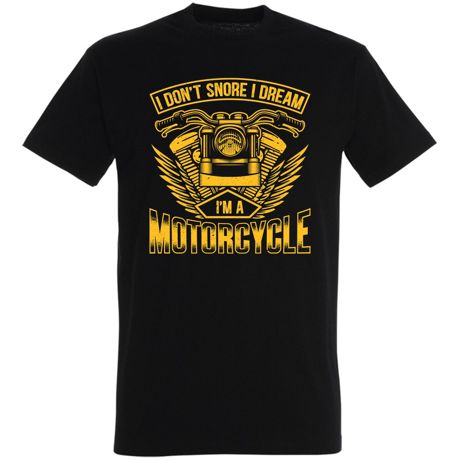 Poczuj wiatr we włosach i adrenalinę w żyłach z naszą nową koszulką! Projekt łączy w sobie nostalgię za klasycznymi motocyklami z odrobiną humoru. Grafika, utrzymana w stylu retro z efektem vintage, prezentuje motocykl z charakterystycznym, starannie odwzorowanym silnikiem, otoczonym przez złote skrzydła i ramy. Pod silnikiem widnieją napisy „I DON’T SNORE” oraz „I DREAM”. Na dole, z drugiej strony, umieszczono napis „I’M A MOTORCYCLE”. To idealny sposób na wyrażenie swojej pasji do motoryzacji i poczucia humoru! Koszulka jest nie tylko stylowa, ale i wygodna – idealna na co dzień, na spotkania z przyjaciółmi czy na wypad na rower. Zaskocz znajomych oryginalnym wzorem i pokaż im, że jesteś człowiekiem z pasją i poczuciem humoru. Nie czekaj, zamów już dziś i dołącz do grona fanów stylu retro i motocyklowych przygód! Wyraź siebie, baw się dobrze i ciesz się wygodą na każdym kroku.