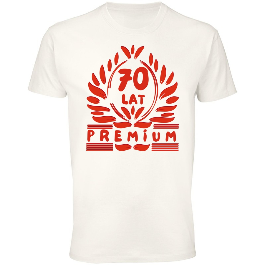 Świętuj w wielkim stylu! Nasza wyjątkowa koszulka z grafiką „70 LAT” to idealny wybór dla osób ceniących sobie unikalny styl i wygodę. Minimalistyczny design, w odcieniach ciepłej czerwieni, łączy w sobie nowoczesność i nutę retro, tworząc koszulkę, która przyciągnie spojrzenia i rozpromieni każdego. Grafika w kształcie promieni słonecznych otacza cyfrę „70”, a pod spodem można odczytać słowa „LAT” i „PREMIUM”, podkreślając wyjątkową jakość i prestiż.