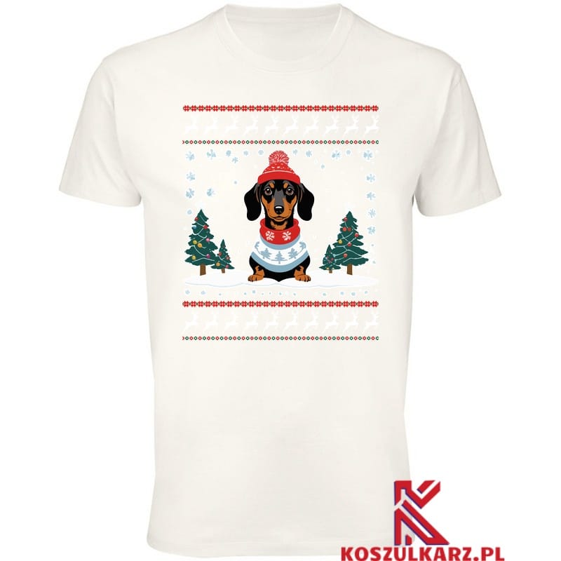 Koszulka na Święta Świąteczny jamnik, który rozgrzeje serce każdego miłośnika psów