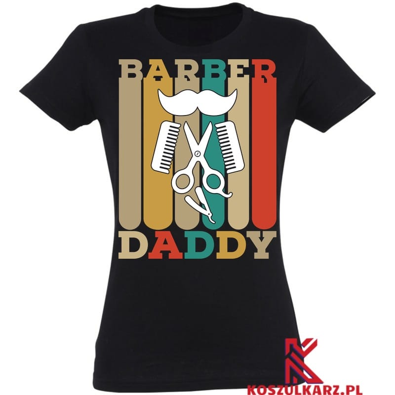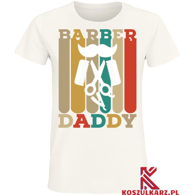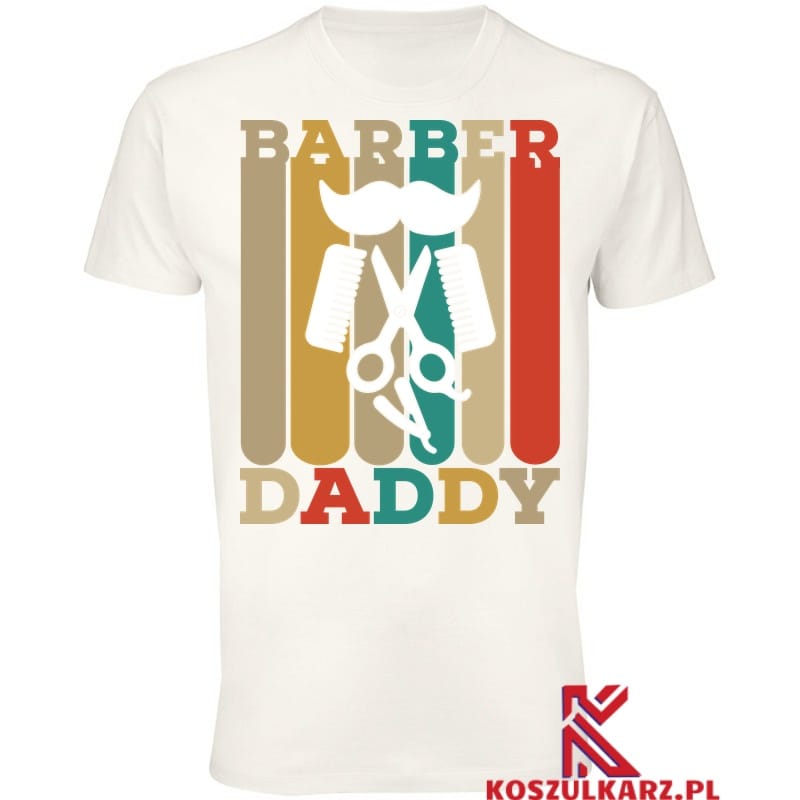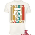 Nadruk „Barber Daddy” łączy w sobie humor i styl, pokazując, że bycie barberem to coś więcej niż praca – to pasja, którą tata z dumą dzieli z innymi. Zgrabna czcionka oraz graficzne akcenty fryzjerskie, takie jak nożyczki, brzytwa czy grzebień, sprawiają, że koszulka jest świetnym elementem garderoby zarówno do pracy, jak i na co dzień.