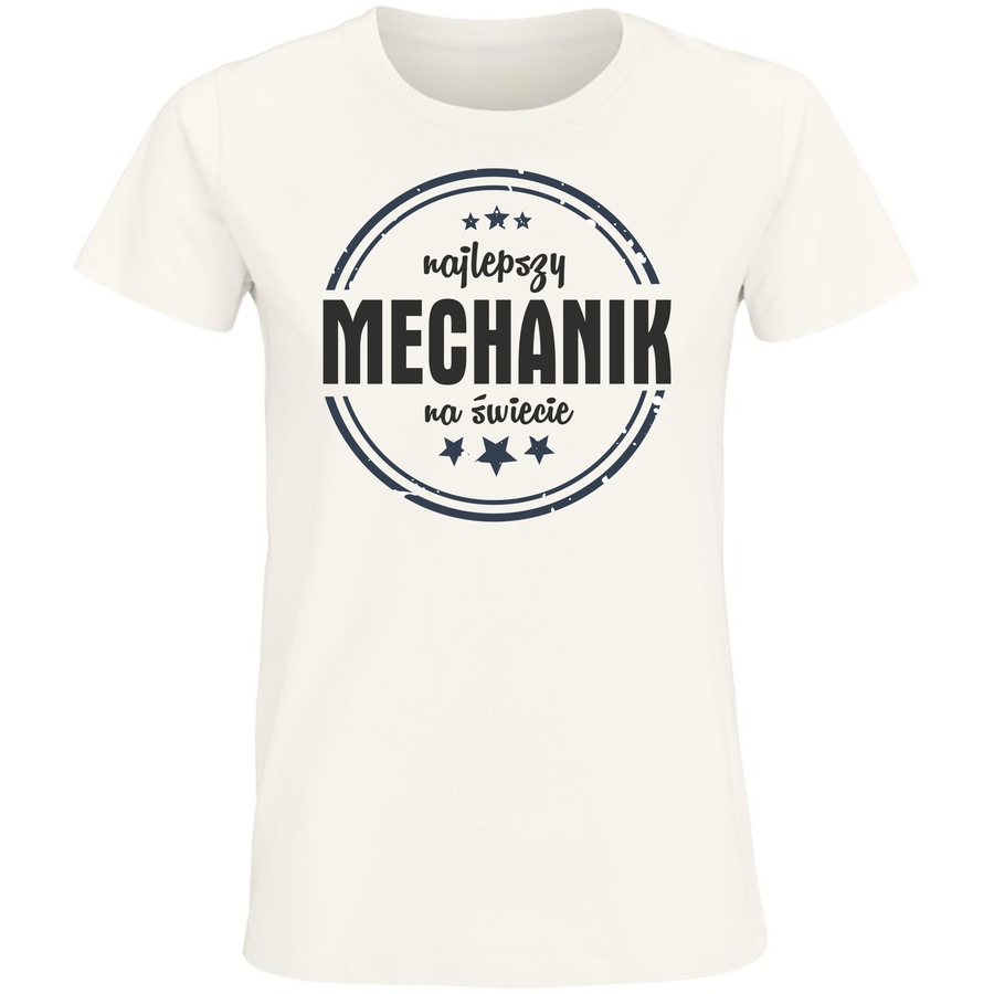 Pokaż światu, kim jesteś! Ta koszulka z hasłem „najlepszy MECHANIK na świecie” to idealny sposób na wyrażenie swojej pasji i dumy z zawodu. Klasyczny, vintage’owy design w formie pieczęci, z subtelnymi gwiazdami, dodaje jej niepowtarzalnego charakteru. To więcej niż ubranie – to manifestacja Twojego talentu i zaangażowania. Idealna na prezent dla zapalonego mechanika, który kocha to, co robi. Wyraź siebie z klasą i poczuciem humoru! Ta koszulka sprawdzi się doskonale zarówno w warsztacie, jak i podczas odpoczynku. Poczuj się wyjątkowy i błyszcz w każdym środowisku! Daj znać wszystkim, że jesteś najlepszy! To świetny sposób na wywołanie uśmiechu i rozpoczęcie rozmowy. Zaoszczędzisz czas i zyskasz podziw!