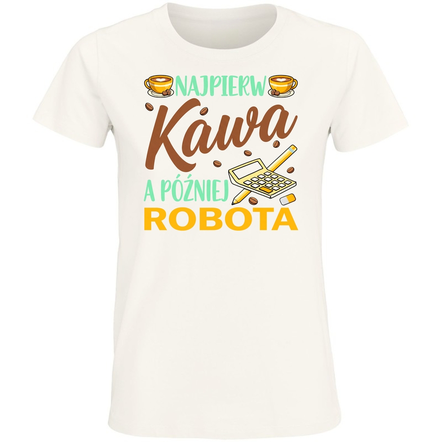 Zacznij dzień z energią i uśmiechem! Nasza nowa koszulka „Najpierw kawa, a później robota” to idealny kompan dla każdego kawosza i zapaleńca pracy. Wykonana z mięciutkiej, 100% bawełny, sprawi, że poczujesz się komfortowo przez cały dzień, niezależnie od tego, czy pracujesz w domu, w biurze, czy po prostu relaksujesz się. Grafika przedstawia urokliwe połączenie filiżanki kawy, palonych ziaren i nowoczesnych akcesoriów, takich jak tablet, co oddaje ducha współczesnego życia – kawę dla pobudzenia, a potem czas na realizację celów! Lekki, pastelowy kolorystyka i zabawny napis sprawiają, że koszulka idealnie sprawdzi się na co dzień, dodając Twojemu outfitowi odrobinę luzu i pozytywnej energii.