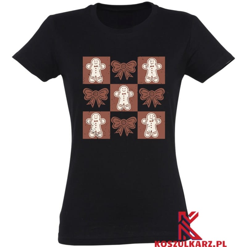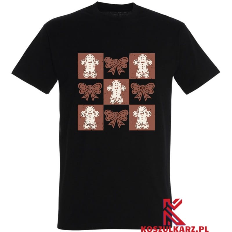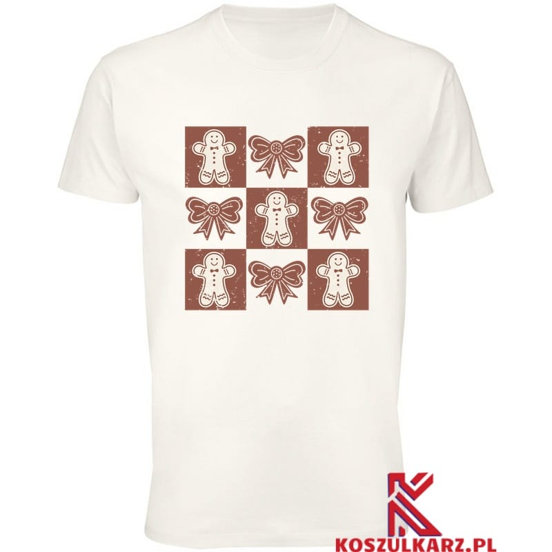Świąteczna elegancja z nutą retro Kokardy i Pierniki Ta wyjątkowa koszulka to idealny wybór dla wszystkich miłośników świątecznego klimatu z nutą nostalgii. Na grafice znajdziemy klasyczne bożonarodzeniowe motywy – urocze pierniki i kokardy, które w połączeniu z retro stylistyką tworzą niezapomniany efekt. Doskonała na spotkania rodzinne i wszystkie świąteczne okazje, pozwoli Ci wyróżnić się i wprowadzić świąteczny nastrój.