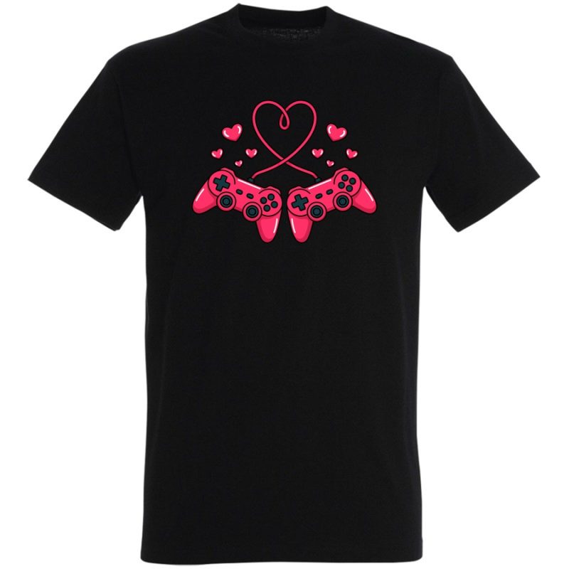 Zaprojektuj swój świat gamingowy i wyraź swoje uczucia z naszą wyjątkową koszulką! Ta urocza grafika łączy w sobie pasję do gier i romantyczne akcenty – dwa czerwone kontrolery krzyżują się w serce, a wokół unoszą się drobne serduszka. Idealna dla graczy i graczek, którzy lubią łączyć swoje hobby z odrobiną słodyczy. Niezależnie, czy świętujesz Walentynki, a może po prostu chcesz pokazać, co lubisz, ta koszulka będzie idealnym wyborem.