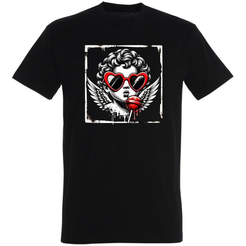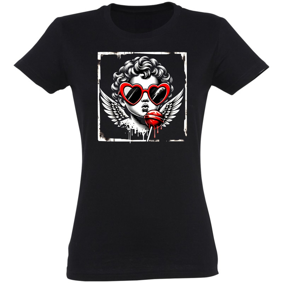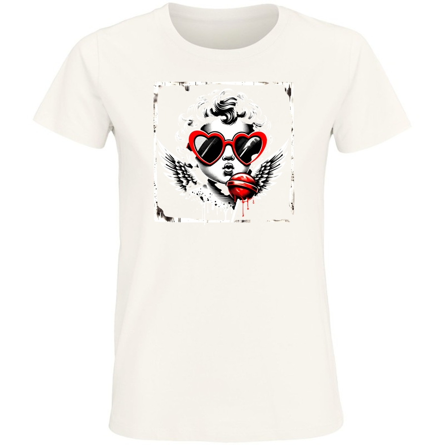 Poczuj wiatr w swoich włosach i chęć świętowania miłości! Ta wyjątkowa koszulka to hołd dla swobodnego ducha i artystycznej ekspresji. Grafika przedstawia uroczy aniołek w stylowych okularach serca, trzymający czerwoną, soczystą lizak – symbol słodkiego życia i beztroskiego humoru. Styl grafiki łączy w sobie elementy vintage z nowoczesnym twistem, tworząc niepowtarzalny i bardzo chwytliwy design. To idealny wybór dla tych, którzy lubią wyróżniać się z tłumu i dodać odrobinę pozytywnej energii do swojej garderoby. Wyobraź sobie siebie w tej koszulce na letnim koncercie, podczas spotkania z przyjaciółmi, czy po prostu podczas relaksu w domu – z pewnością przyciągniesz spojrzenia i wywołasz uśmiechy.