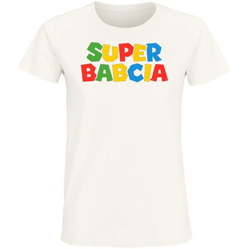 Poznaj koszulkę, która podbije serca wszystkich miłośników dobrego humoru i niebanalnego stylu! Ta wyjątkowa koszulka to prawdziwa dawka energii i radości. Na jej froncie królują duże, kolorowe litery tworzące zabawny napis „SUPER BABCIA”. Żywe kolory – intensywny niebieski, radosny żółty, energetyczny czerwony i zieleń – sprawiają, że koszulka przyciąga wzrok i budzi pozytywne emocje. Idealna dla babci z pazurem, która kocha się wyróżniać i nie boi się być sobą. A może chcesz podarować ją swojej mamie, która w duchu jest SUPER-babcią? Ta koszulka to świetny pomysł na prezent na urodziny, imieniny, a nawet bez okazji – bo kto nie lubi uśmiechu na twarzy? Wykonana z miękkiej, przyjemnej w dotyku bawełny, zapewni Ci wygodę przez cały dzień.