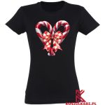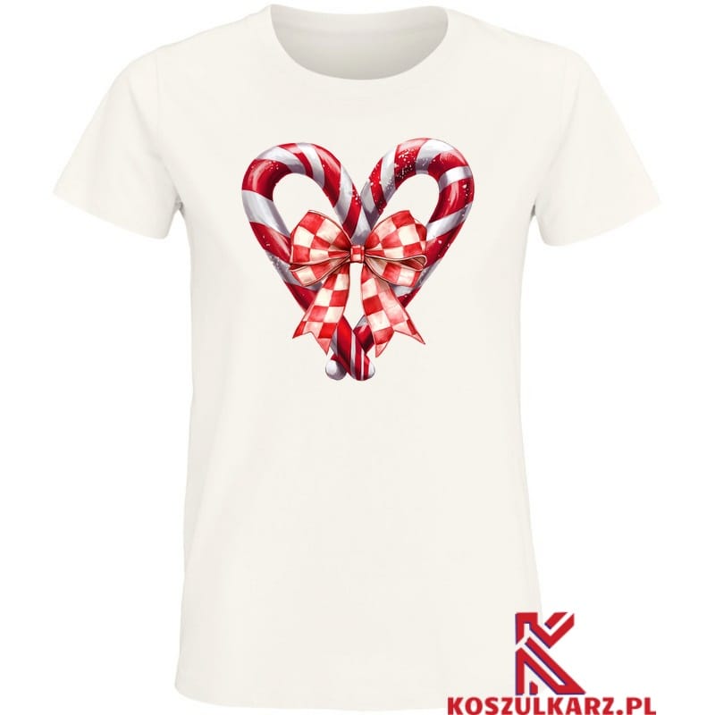 Koszulka z uroczym wzorem dwóch cukrowych lasek ułożonych w kształt serca to idealny wybór na święta. Cukrowe laski, w klasycznych czerwono-białych barwach, przewiązane są kokardką w biało-czerwoną kratkę, która dodaje całości eleganckiego charakteru. Motyw serca symbolizuje miłość, ciepło i świąteczne przywiązanie do bliskich. Idealnie wpisuje się w bożonarodzeniowy klimat, emanując radością i słodkimi wspomnieniami Serce z Cukrowych Lasek.