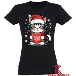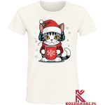 Koszulka wykonana z miękkiej, wysokogatunkowej bawełny, zapewnia komfort noszenia nawet w chłodniejsze dni. Trwały nadruk gwarantuje, że uroczy kot zachowa swoje żywe kolory przez długi czas, nawet po wielu praniach. Idealna do codziennych stylizacji, wprowadzi świąteczny nastrój wszędzie tam, gdzie się pojawisz.