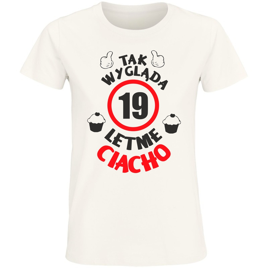 Świętuj 19 lat z humorem i stylem! Ta koszulka to idealny prezent urodzinowy dla Ciebie lub bliskiej Ci osoby. Grafika w stylu retro, z charakterystycznymi dłońkami pokazującymi kciuki i centralnym czerwonym okręgiem z liczbą „19”, przyciąga wzrok i budzi uśmiech. Dolna część grafiki zawiera napis „LET ME CIACHO”, co dodaje koszulce unikalnego, zabawnego akcentu. Idealna na urodziny, imprezy tematyczne lub po prostu na co dzień, aby wyrazić swój entuzjazm i poczucie humoru. Ta koszulka to gwarancja pozytywnej energii i niezapomnianych chwil! Zaskocz swoich bliskich oryginalnym prezentem, który z pewnością zostanie doceniony i zapamiętany. Wyraź siebie i pokaż, że masz świetne poczucie humoru!