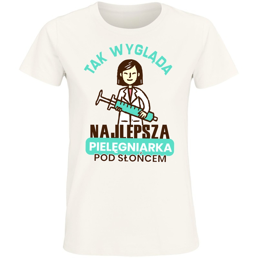 Poczuj się jak prawdziwa bohaterka, która ratuje świat (lub przynajmniej swój dzień!), dzięki naszej wyjątkowej koszulce „NAJLEPSZA PIELĘGNIARKA POD SŁONCEM”! Grafika w stylu retro, z wyraźnymi, kreskówkowymi liniami, przeniesie Cię wprost do czasów komiksów i vintage designu. Uśmiechnij się do świata, nosząc ten zabawny i energetyczny symbol siły, poświęcenia i optymizmu. Ta koszulka to idealny prezent dla pielęgniarki, studentki medycyny, a dla każdego, kto ceni poczucie humoru i lubi wyróżniać się z tłumu! Wyobraź sobie, jak przyciągasz spojrzenia i wywołujesz uśmiechy na twarzach przechodniów – to wszystko dzięki tej odważnej i pełnej pozytywnej energii koszulce. Poczuj się pewniej, wyraź swój charakter i pokaż, że jesteś wyjątkowa. Ta koszulka to nie tylko element garderoby, to manifestacja Twojej osobowości i wyjątkowego poczucia stylu.