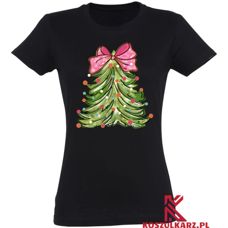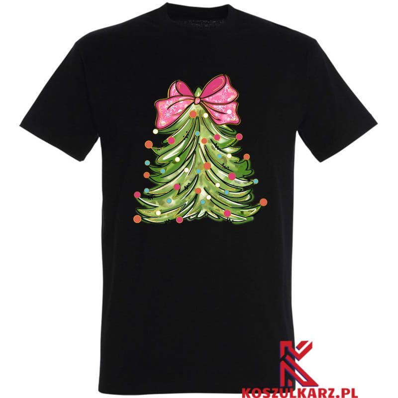 Choinka z różową kokardą to symbol świątecznej atmosfery, pełnej miłości i radości. Jej kolorowy wzór emanuje pozytywną energią i zachęca do celebrowania wyjątkowych chwil. Koszulka jest doskonałym dodatkiem do Twojej świątecznej garderoby, pozwalając wyrazić swoją pasję do tego magicznego czasu w roku.
