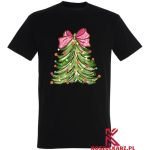 Ta koszulka to idealny wybór dla wszystkich, którzy pragną dodać odrobinę świątecznej magii do swojej garderoby. Nadruk przedstawiający piękną choinkę z urokliwą różową kokardą to doskonały sposób na wyrażenie radości z nadchodzących świąt. Niezależnie od tego, czy planujesz spotkanie z rodziną, czy świąteczne przyjęcie, ta koszulka z pewnością przyciągnie spojrzenia i wprowadzi wszystkich w radosny nastrój.