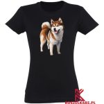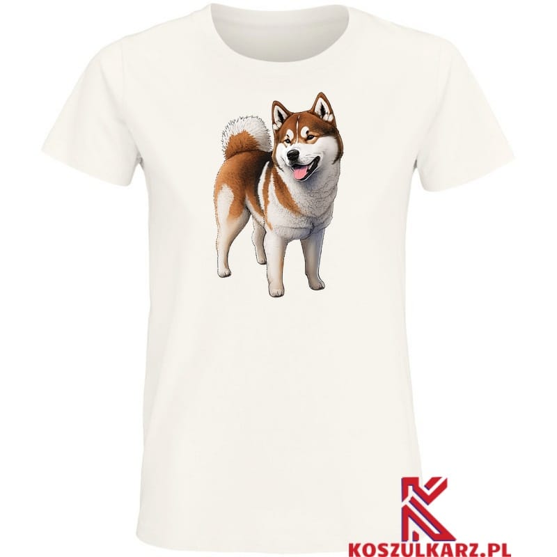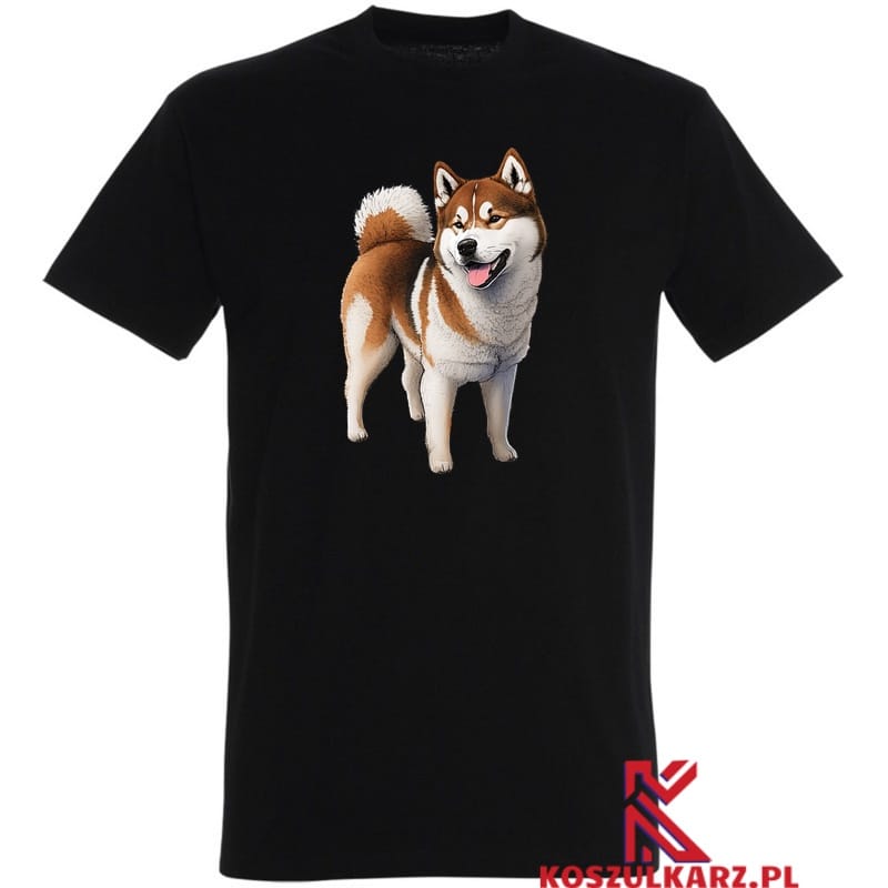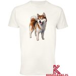 Nadruk przedstawia psa rasy Akita, symbolizującego siłę, lojalność i elegancję. Wyjątkowy wizerunek psa w pozie, która ukazuje jego dostojność i spokojną naturę, idealnie odzwierciedla cechy tej szlachetnej rasy. Akita ma charakterystyczną puszystą sierść, wyraziste oczy oraz stojące uszy, co w połączeniu z wyrafinowaną kolorystyką nadruku dodaje koszulce klasy i wyróżnia ją spośród innych. Grafika oddaje dumę i pewność siebie Akity, jednocześnie emanując spokojem i delikatnością.