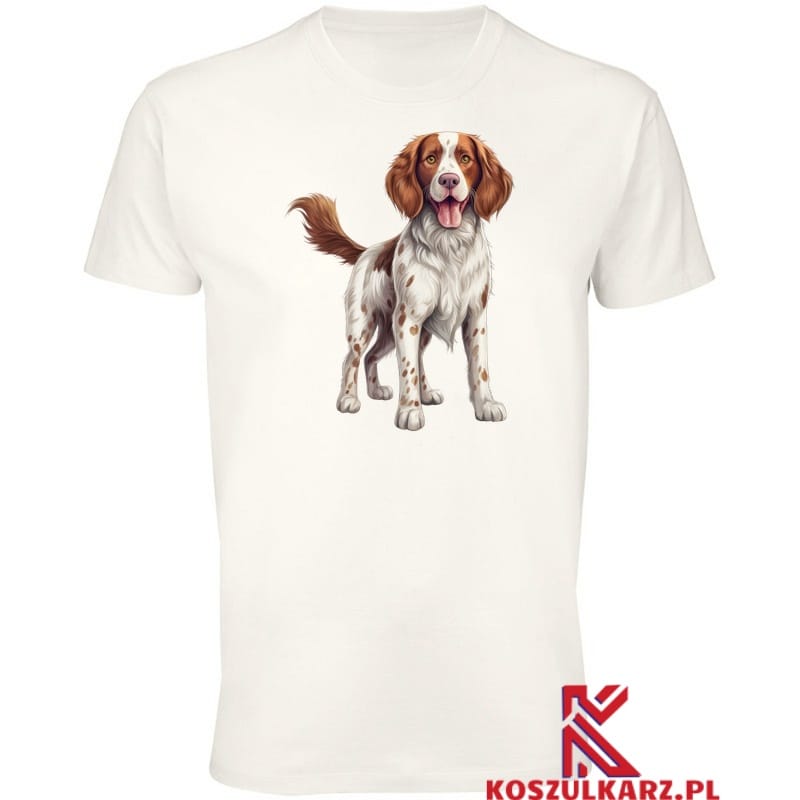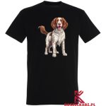 Na tej koszulce znajduje się urokliwy nadruk przedstawiający Springer Spaniela Walijskiego, znanego ze swojej wesołej natury i doskonałych umiejętności myśliwskich. Te psy są znane z nieprzeciętnej energii i entuzjazmu, co sprawia, że są doskonałymi towarzyszami dla aktywnych rodzin. Nadruk ukazuje psa w radosnej pozie, co doskonale oddaje jego temperament oraz oddanie właścicielowi. Koszulka jest idealna dla każdego, kto pragnie wyrazić swoją miłość do tej pełnej życia rasy.