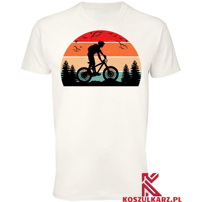 Na tej koszulce znajduje się wyjątkowy nadruk przedstawiający rowerzystę w klasycznym stylu, który odzwierciedla radość z jazdy na dwóch kółkach. Grafika przywołuje na myśl przygody w plenerze, eksplorację urokliwych tras i radość z odkrywania nowych miejsc. Koszulka ta jest idealna dla wszystkich, którzy pragną wyrazić swoją miłość do kolarstwa i stylu retro.