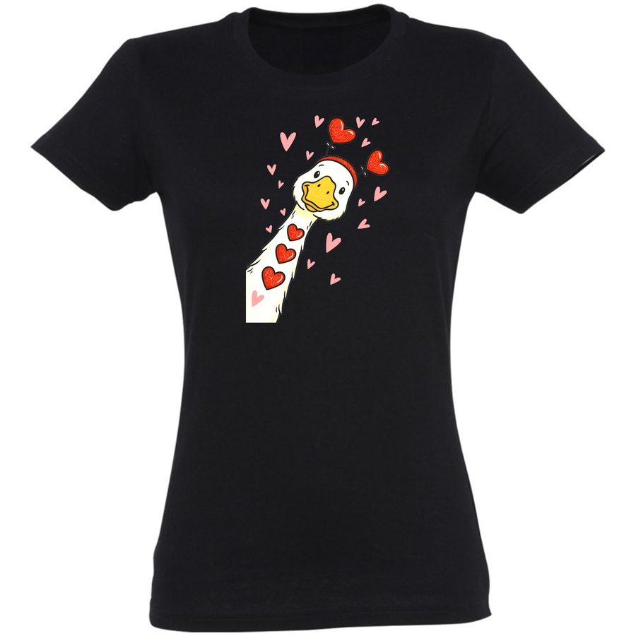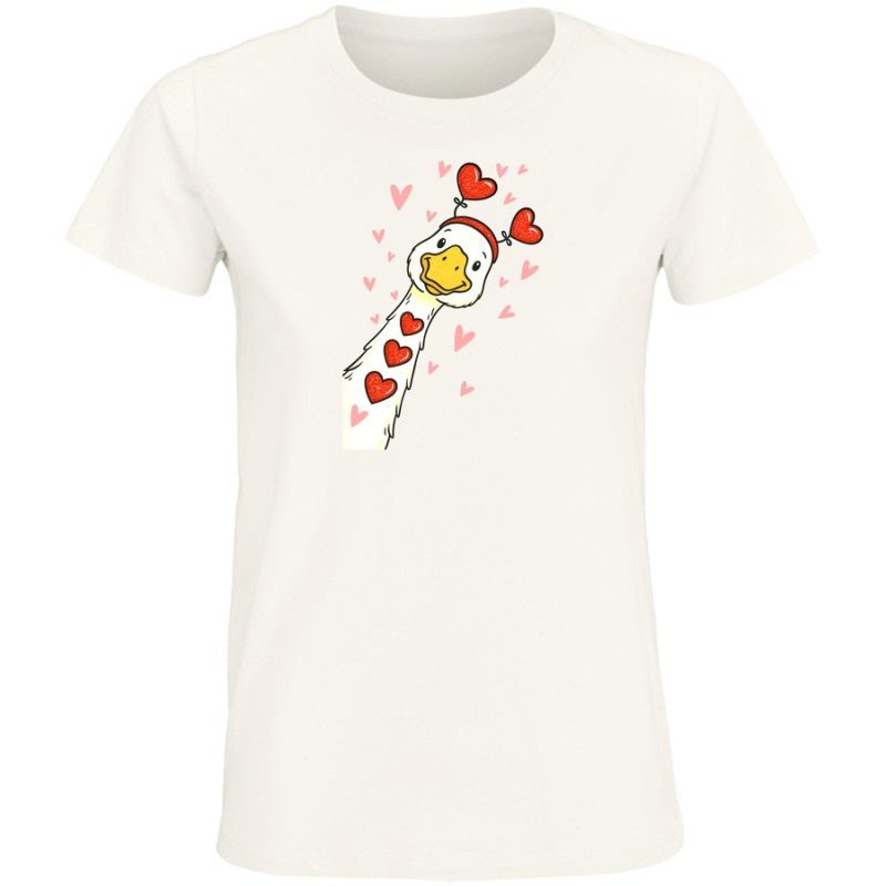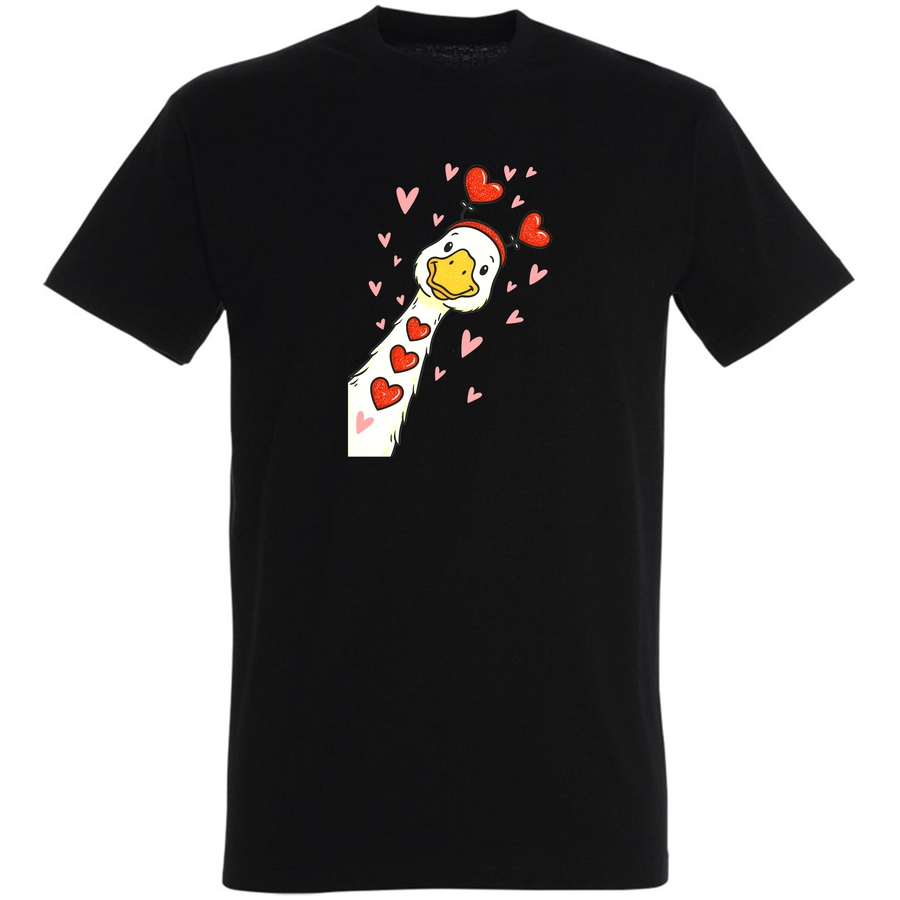 Zakochana Kaczuszka – idealna koszulka dla tych, którzy lubią urok i humor! Ta urocza grafika przedstawia słodką, rysunkową kaczuszkę, która wylewa swoje serce – dosłownie! Otoczona wirującymi sercami w odcieniach różu i czerwieni, kaczuszka wyraża swoje zauroczenie w najsłodniejszy możliwy sposób. Grafika ma styl kreskówkowy, z grubymi konturami i pastelowymi kolorami, co sprawia, że jest niezwykle przyciągająca wzrok i uniwersalna. Niezależnie od tego, czy szukasz prezentu dla ukochanej osoby, czy chcesz dodać odrobinę radości do swojej garderoby, ta koszulka jest strzałem w dziesiątkę!
