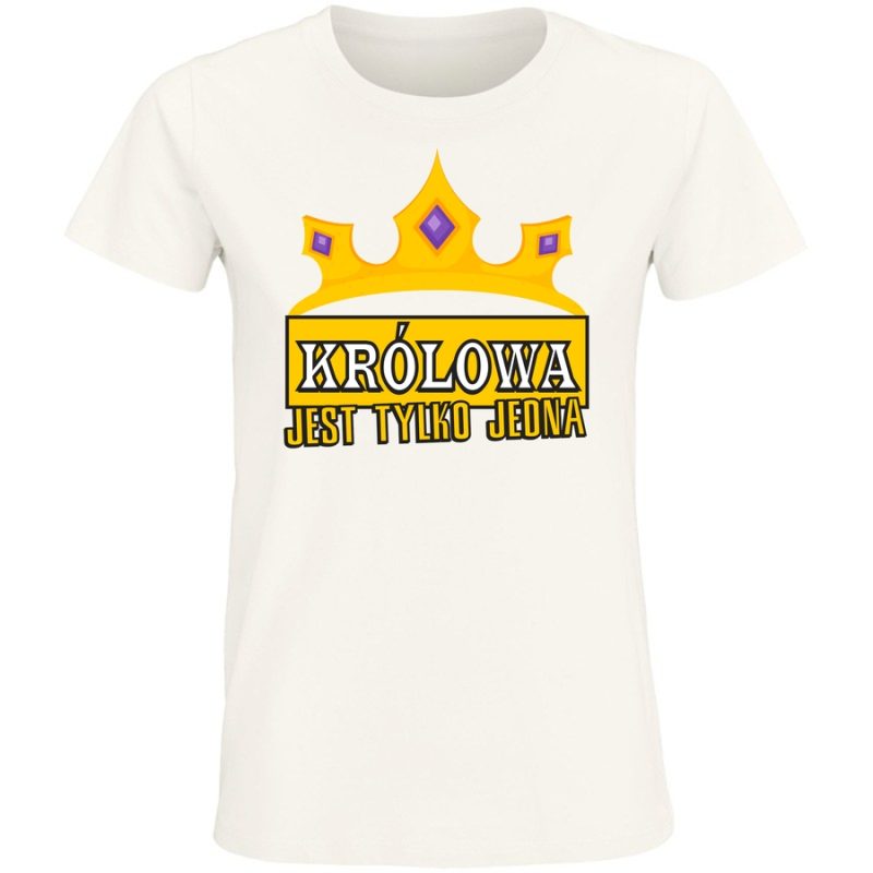 Pokaż światu, że jesteś wyjątkowa! Nasza koszulka „Królowa jest tylko jedna” to idealny sposób, aby dodać odrobinę królewskiego uroku do swojej garderoby. Wykonana z wysokiej jakości materiałów, ta koszulka emanuje stylem i pewnością siebie. Grafika w stylu retro z dekoracyjną koroną i wyraźny napis sprawiają, że jest to idealny wybór dla każdej kobiety, która chce się wyróżnić. Zabłyśnij na co dzień i poczuj się jak prawdziwa królowa – z tą koszulką z pewnością przyciągniesz spojrzenia i zbudujesz pozytywny wizerunek. To nie tylko odzież, to manifestacja Twojej siły i niezależności.