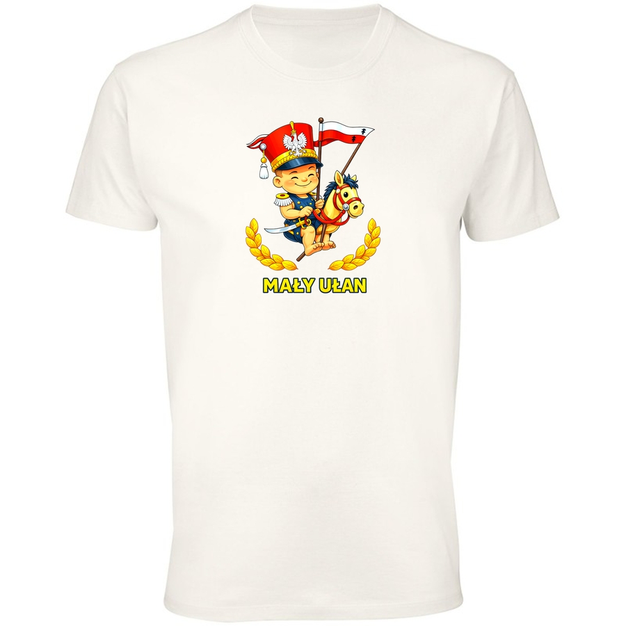 Pokaż swój polski patriotyzm z uśmiechem! Nasza wyjątkowa koszulka „Mały Ułan” to idealne połączenie zabawy i historii. Grafika przedstawia uroczego chłopca w mundurze ułana, dumnie zasiadającego na koniu, z towarzyszącymi mu elementami herbu i wieńcami laurowymi. Styl grafiki można określić jako nawiązujący do kreskówek z lat 90., z wyraźnym naciskiem na zabawę i urok. To doskonały sposób na wyrażenie dumy z polskiej tradycji w lekki i nowoczesny sposób. Idealna dla dzieci i dorosłych, którzy cenią sobie oryginalny design i chcą dodać swojemu outfitowi odrobinę polskiego sznytu. Gwarantujemy, że wzbudzisz uśmiech i ciekawe spojrzenia! Noś ją na co dzień, na specjalne okazje lub podaruj bliskiej osobie – to prezent, który na zawsze pozostanie w pamięci. Wyraź swój styl i pokaż światu, że kochasz Polskę! Poczuj się jak prawdziwy ułan, nosząc tę wyjątkową koszulkę.